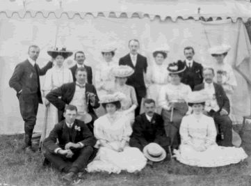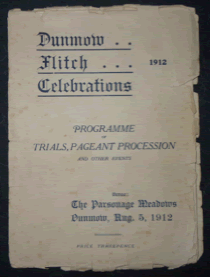 A photograph taken by Stacey the local photographer (whose premises in the High Street still bear his name) shows the claimants and the jury of maidens and bachelors from the 1906 trial. The claimants are (left) Mr and Mrs Lloyd-Willey of London and (right) Mr and Mrs Morgan of Bristol The 1912 Flitch Trial included a pageant of Dunmow history going back to the middle-ages. A large number of local residents took part, dressed in the appropriate costumes, including a number on horseback. The pageant was re-enacted several times in the 1970s and 1980s. The programme of the 1912 Flitch Celebrations. After a break around the time of World War One, the trials continued throughout the 1930s until the outbreak of war in 1939. During the war years, there was one trial in 1942, mainly for the benefit of the American airmen at the local airfields (Andrewsfield, Little Easton, Stansted and others).