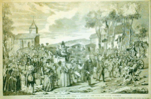 The Dunmow Flitch –Past and PresentMuch has been written about the Custom of the Dunmow Flitch, from the earliest references in ‘The Vision of Piers the Plowman’ by William Langland in about 1350 and in ‘The Canterbury Tales’ by Geoffrey Chaucer at about the same time. The custom of giving a side of bacon to a couple who could swear that they had not repented of their marriage for a year and a day must go back to before the 14th century, even to Saxon or Norman times. The earliest record of the award is in 1445 at Little Dunmow Priory but this is much later than the references above. Several awards were made at Little Dunmow up to the 18th century but the ceremony as we know it today in Great Dunmow originated in 1701 and was repeated in 1751 when several well-known engravings of the procession were published.