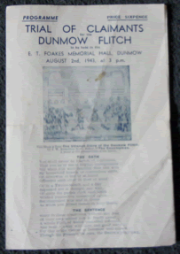 The programme of the only WW2 flitch Trial. Trials continued after the war, including one as part of the Festival of Britain celebrations in 1951. In more recent times, the trials have been held every four years on a leap year. The early trials were held in the Town Hall, then in a marquee in the Causeway meadows (now called the Recreation Ground), on Parsonage Downs and recently in a marquee in Talberds Ley behind the F T Foakes Memorial Hall.