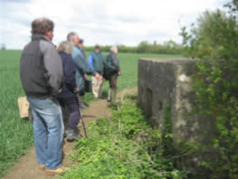 Members of the history group enjoyed a visit to the WW2 pillbox in Stortford Road, where Essex expert Fred Nash gave a descriptive talk of how it was built and used, and afterwards in the fields opposite found another concrete object from WW2.